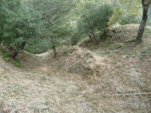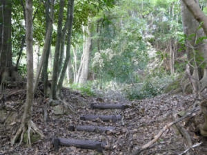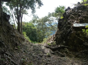 切岸は斜面を通しての敵の侵入を防ぐため、山の斜面を切り落として作られた人工的な「崖」或いは「壁」である。