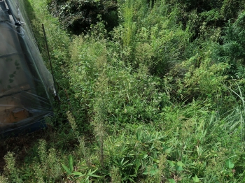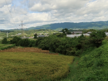| 上田氏墓所から城跡を望む | 土塁 | |