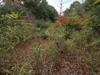 現 状かつらぎ町窪に城跡はあり、地元で城尾山と呼ばれている。城跡の最北部に墓地があり、そこから南側に向けて尾根上を曲輪が連なって配置されているが、放置された柿畑が雑草に覆われ、形状が確認しにくい状態である。 城の東西は切り立った斜面で、防御性を高めている。 |