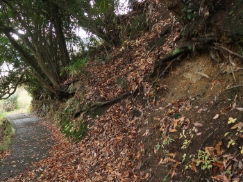| 南端の曲輪 | 山道沿いに祀られた地蔵 |