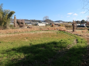現 状神領城は単曲輪の城で、現在曲輪部分は田んぼとなっている。城跡の西側を流れる海神川が天然の堀となり、西側から北側に向けて延びる窪地が堀切跡という。 また南側から東側に向けては切岸となっており、曲輪部分は周辺より独立した構造となっている。 |