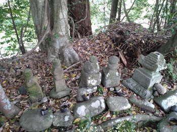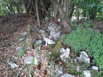 現 状集落の北の丘陵部にある小高い丘が桜木山で、現在花地一族の墓や宝篋印塔が祀られている。この墓石群はみなべ町指定文化財に指定されている。 なお桜木山の周辺には「御城垣内」や「御屋敷田」という地名が伝わるが、道路建設や田畑により改変されているため明確な遺構は確認できない。 |