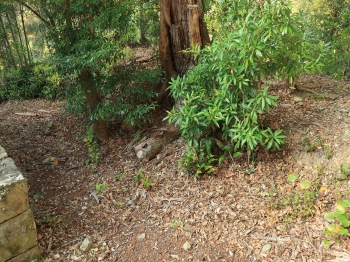 現 状JR江住駅裏にある小高い丘にある春日神社が城跡といわれている。遺構は春日神社境内南側に低い土塁と御社裏側に高さ1mほどの土塁と一部道路工事で改変されているが堀切が1条残されている。 城跡からは江住集落を見下ろせる位置にあり、城館を設けるには適した位置にあることが分かる。 |
