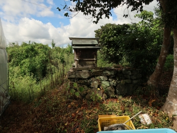 現 状民家脇に祠が祀られている土盛部分が土塁であり、土塁を越えた谷が堀跡である。榊が城は、現在は埋められているが当時は四方を堀で囲まれた要害にある館城であった。 また城跡の南側には、庵跡や上田氏の墓所がある。 |