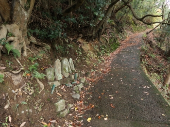 | 南端の曲輪 | 山道沿いに祀られた地蔵 |