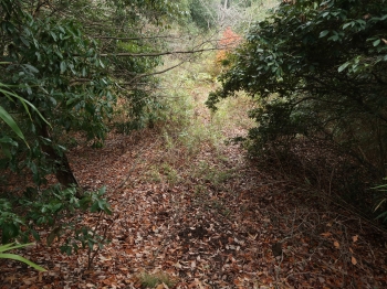 現 状かつらぎ町窪に城跡はあり、地元で城尾山と呼ばれている。城跡の最北部に墓地があり、そこから南側に向けて尾根上を曲輪が連なって配置されているが、放置された柿畑が雑草に覆われ、形状が確認しにくい状態である。 城の東西は切り立った斜面で、防御性を高めている。 |