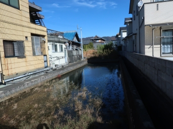 | 北側跡(道路部分) | 溜池(当時の堀跡) |
