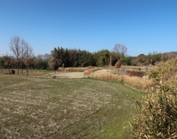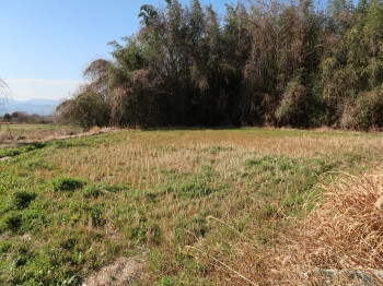 現 状神領城は単曲輪の城で、現在曲輪部分は田んぼとなっている。城跡の西側を流れる海神川が天然の堀となり、西側から北側に向けて延びる窪地が堀切跡という。 また南側から東側に向けては切岸となっており、曲輪部分は周辺より独立した構造となっている。 |